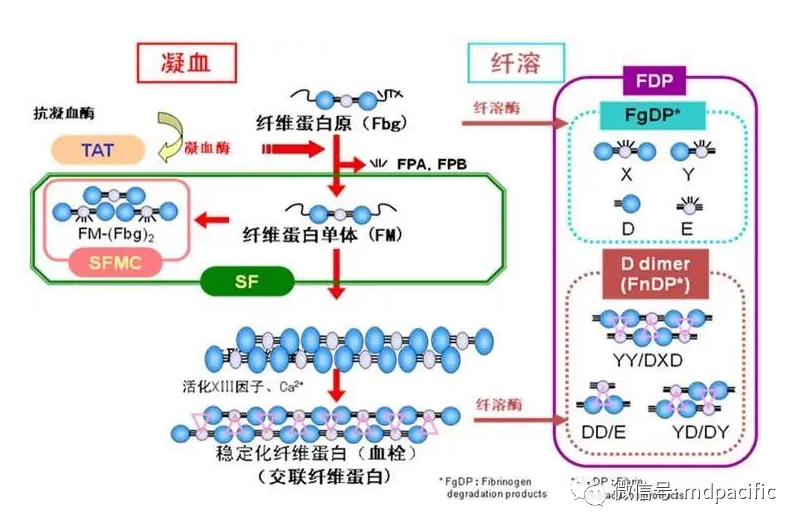 血(xue)液(ye)凝(ning)固是(shi)人類(lei)機體于傷口的(de)(de)自我修(xiu)復(fu)機制(zhi),是(shi)一個復(fu)雜(za)的(de)(de)生理過程(cheng),涉(she)及血(xue)液(ye)從液(ye)體狀態到(dao)可(ke)以凝(ning)固的(de)(de)過程(cheng),D -二聚體(D-Dimer, DD)和纖維蛋(dan)白(原)降解產(chan)物(fibrin(-ogen) degradation products, FDP)是(shi)這個過程(cheng)中的(de)(de)兩(liang)種重要酶解產(chan)物。由于二者與(yu)疾病的(de)(de)發生、發展密切相關,DD和FDP聯合檢測已(yi)成為診斷血(xue)液(ye)凝(ning)固疾病的(de)(de)主流方法之一。